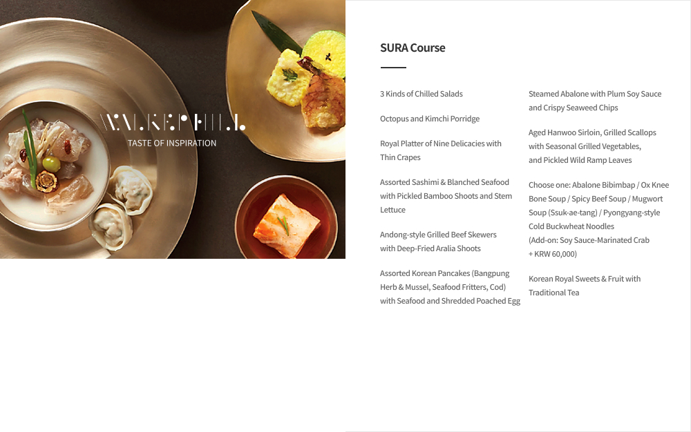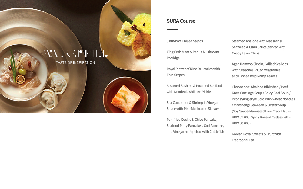 Walkerhill's representative Korean restaurant features modern reinterpretations of the old Korean nobility's cuisine and the royal