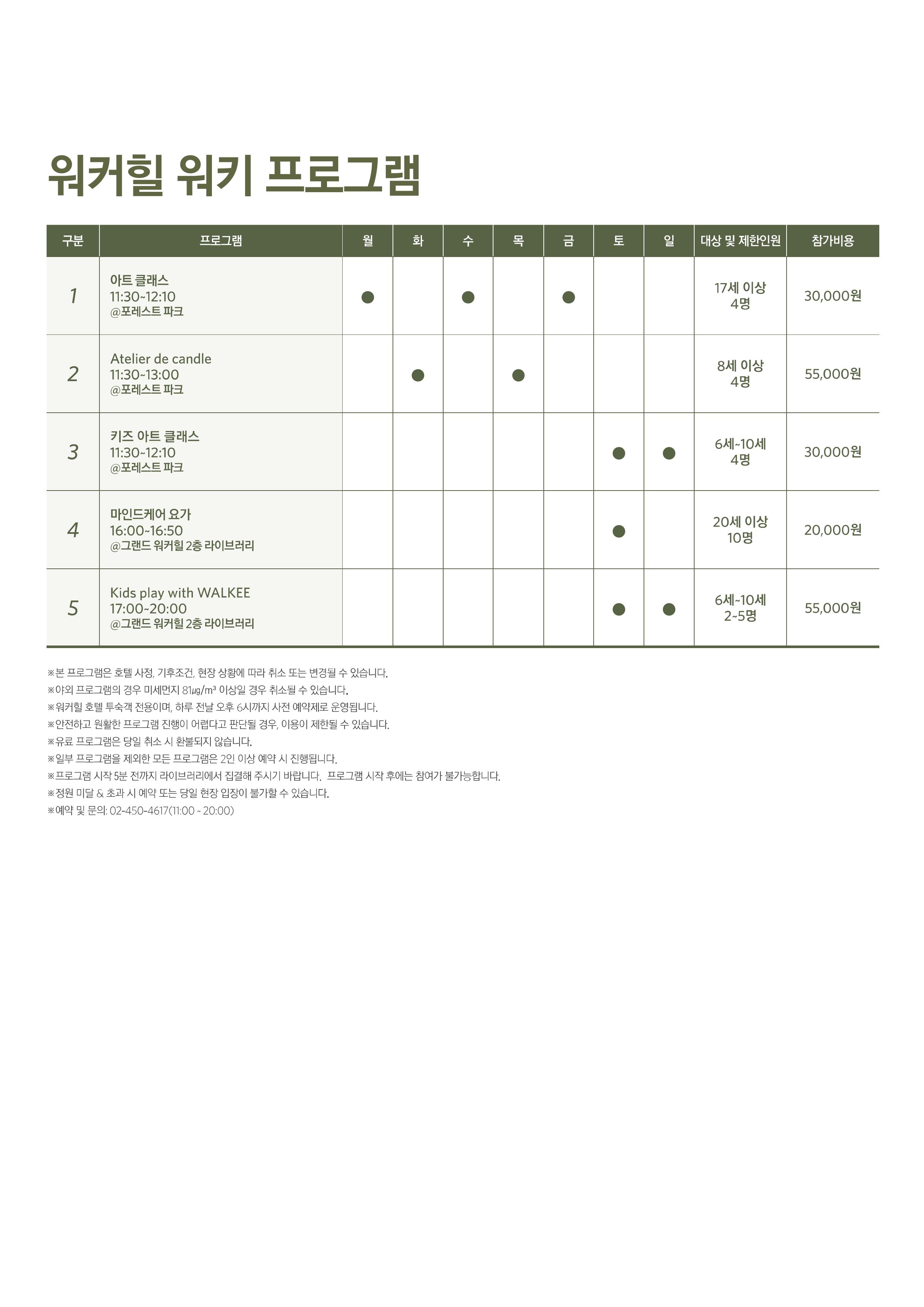 투숙객 전용으로 운영되는 워키 프로그램과 함께
