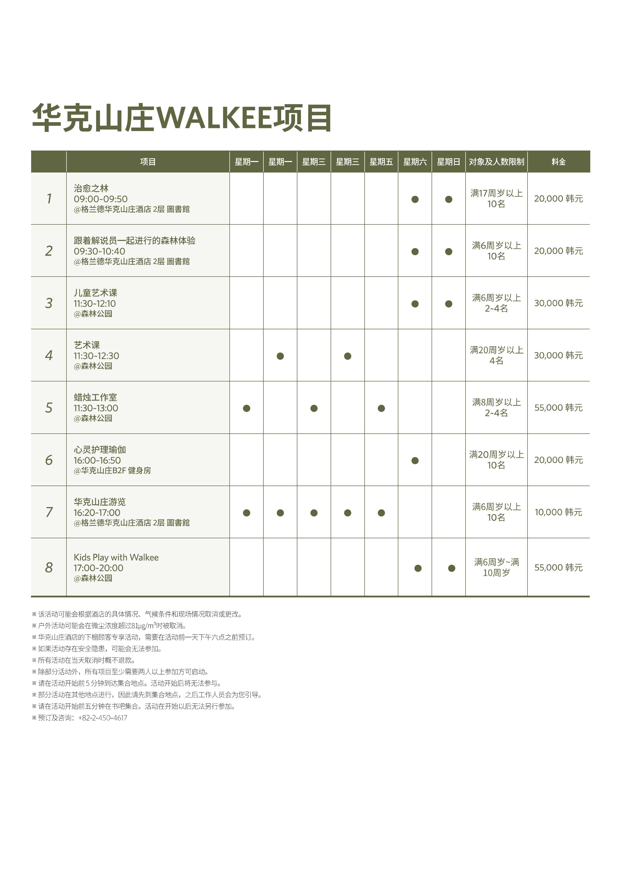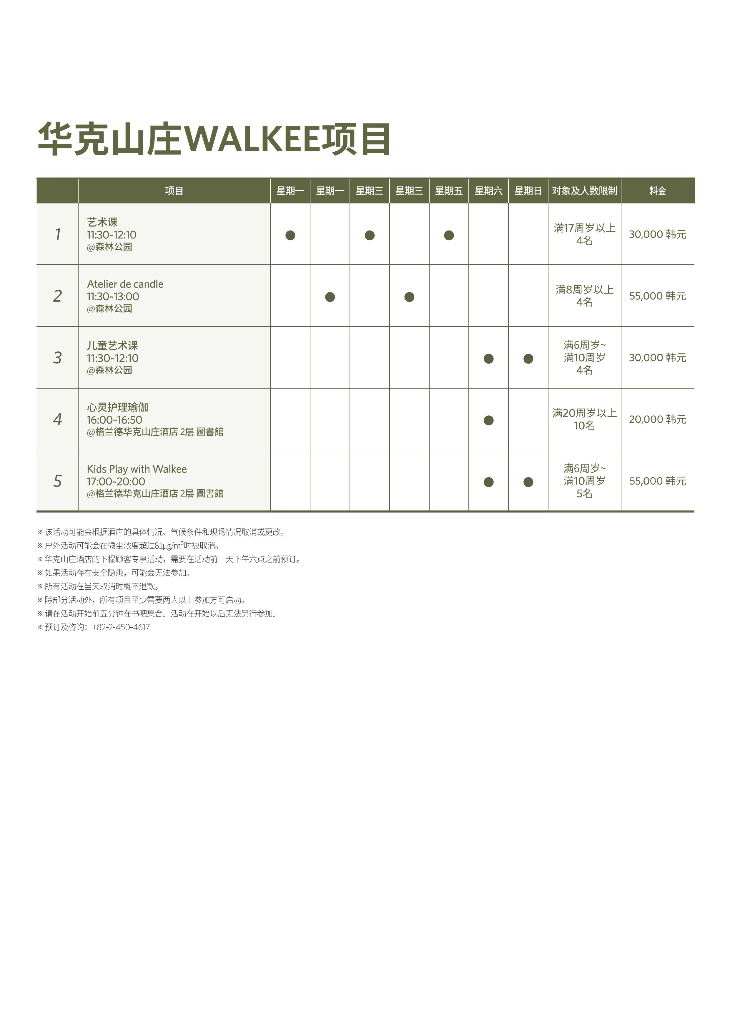 客准备的多姿多彩的WALKEE项目,为你的旅行增添
